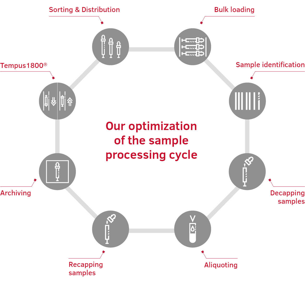 Our standalone and modular solutions guarantee maximum flexibility – tailored precisely to your requirements – and support you and your team in gaining more time for qualitative research work! Our expertise is your excellent workflow in pre- and post-analytics.